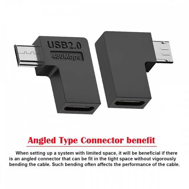 The angled type Allowing you to connect it to a female port, even if space around the port is limited.