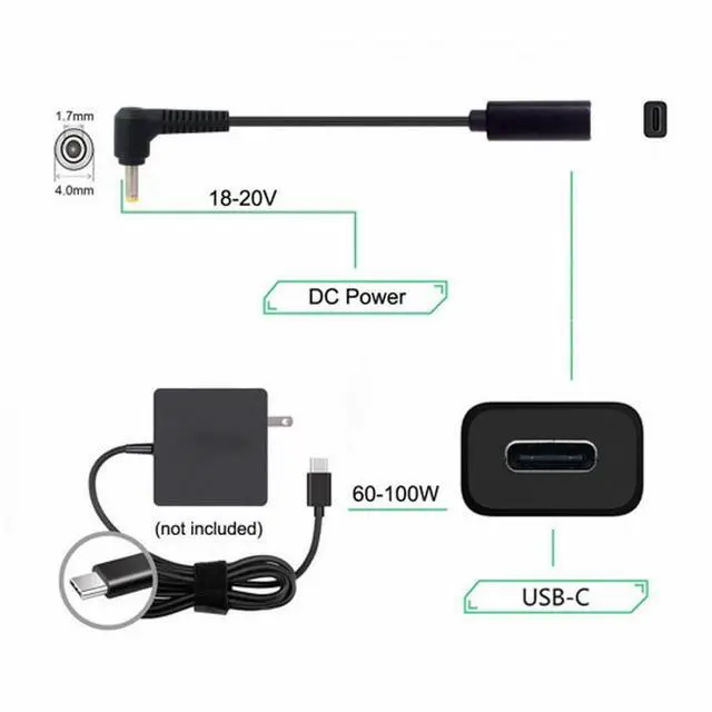 Type-C USB-C Female Input to DC 4.0*1.7mm Power PD Charge Cable fit for Laptop Laptop 18-20V