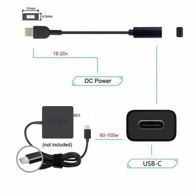 USB 3.1 Type-C USB-C to Rectangle 11.0*4.5mm Power Plug PD Emulator Trigger Charge Cable for Laptop ThinkPad X1 Carbon