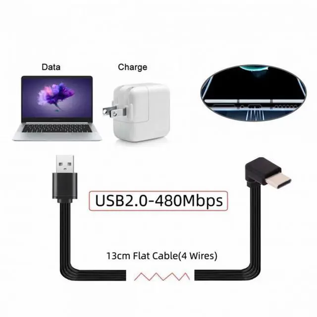 13cm USB 2.0 Type-A Male to USB-C Type-C Up Down Angled 90 Degree Data Flat Slim FPC Cable for FPV Disk Phone
