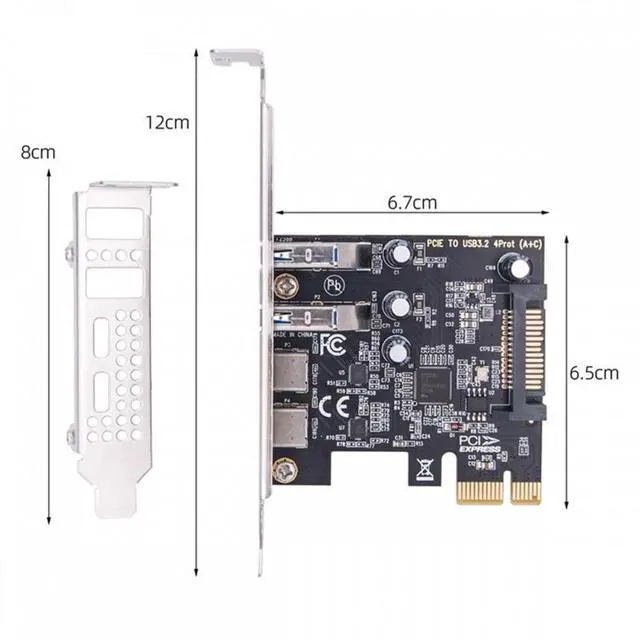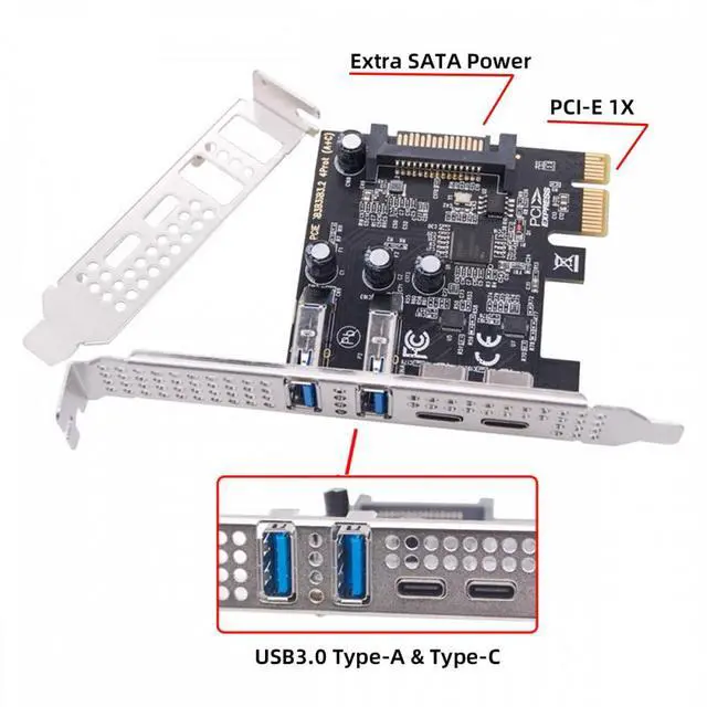 USB3.1 Gen1 5Gbps Dual Type-A and Type-C USB-C Female to PCI-E Express 1x Card Adapter ASM1042 with Low Profile Bracket