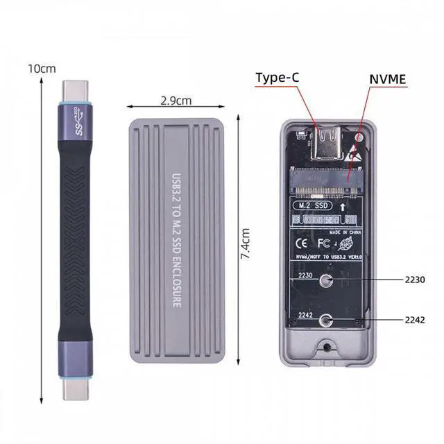 Fit for 2230/2242mm NGFF/NVME M.2 SSD.(The NGFF SSD is not included)