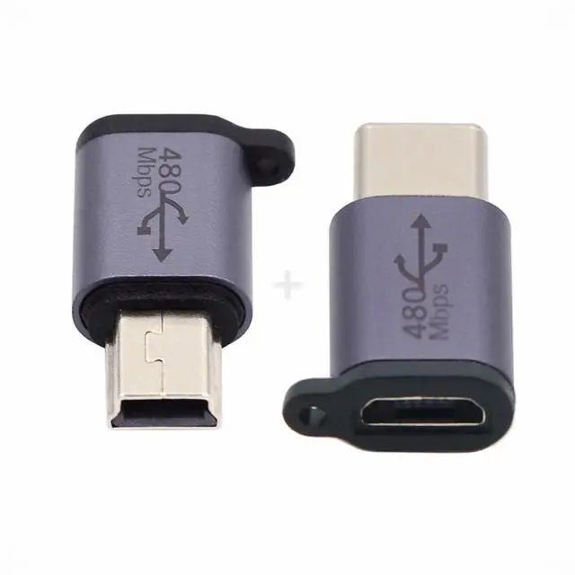 2pcs/lot USB2.0 Micro Female to Mini USB Type-C USB-C Male Power Adapter 480Mbps Data with Chain Holes
