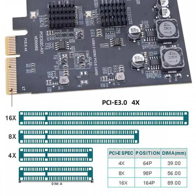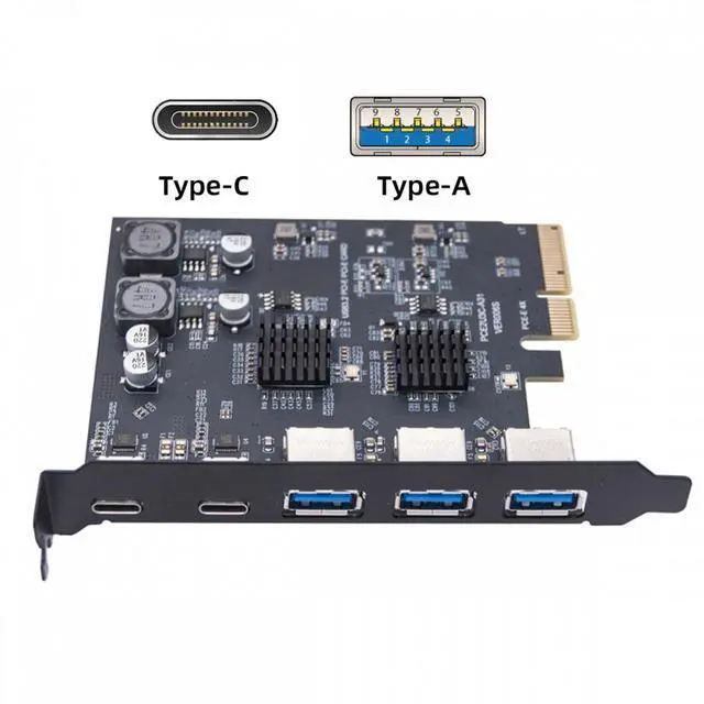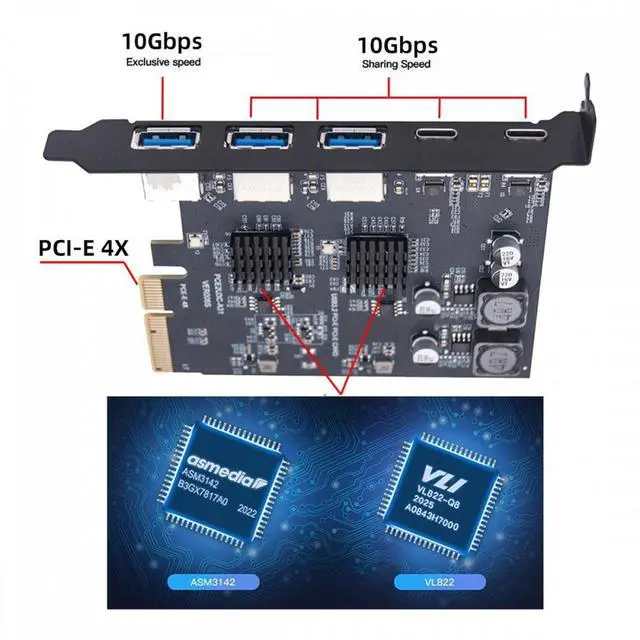 Three Type-A USB3.0 Back Panel Socket and Dual USB3.1 Type-C USB-C to PCI-E Express Card Adapter ASM3142 VL822