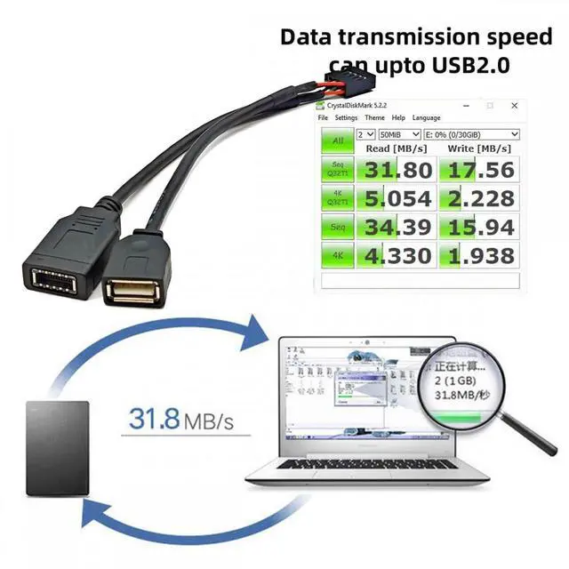 Dual Port Type-A and USB 3.1 Front Panel Socket Key-A Type-E to USB 2.0 9Pin 10Pin Mainboard Header Male Extension Cable