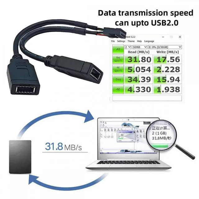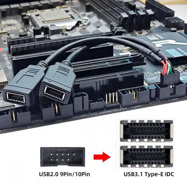 Dual Port USB 3.1 Front Panel Socket Key-A Type-E to USB 2.0 9Pin 10Pin Mainboard Header Male Extension Cable.
