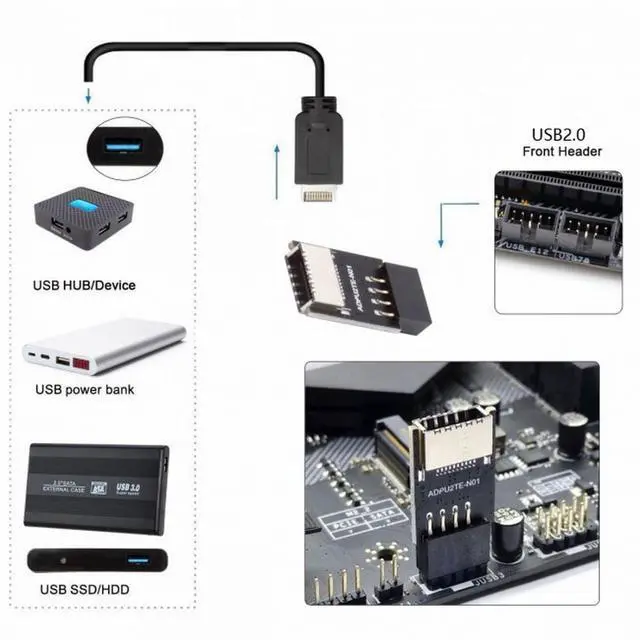 USB 3.1 Front Panel Socket Key-A Type-E to USB 2.0 9Pin 10Pin Mainboard Header Male Extension Adapter