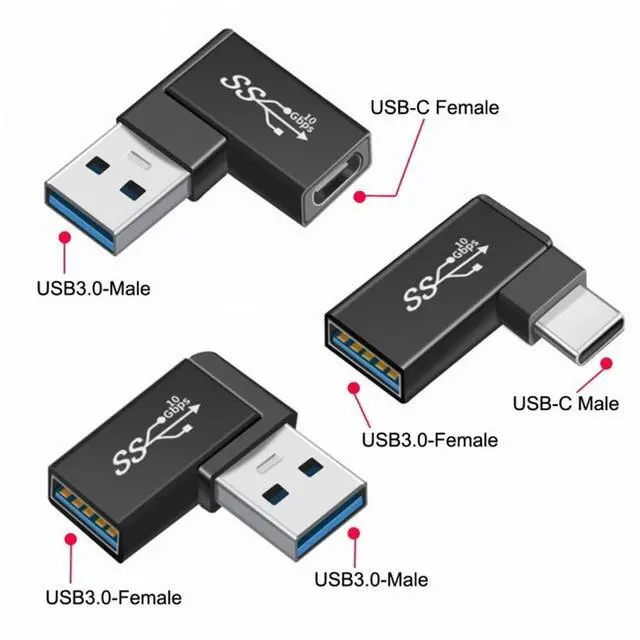 3pcs/lot Angled 90 Degree USB 3.1 Type-C Male Female to USB3.0 Type A Female OTG Data 10Gbps Adapter