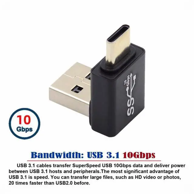 Down Angled USB3.0 Type A Male to USB 3.1 Type-C Male Data 10Gbps Charge Adapter 90 Degree for Laptop Phone