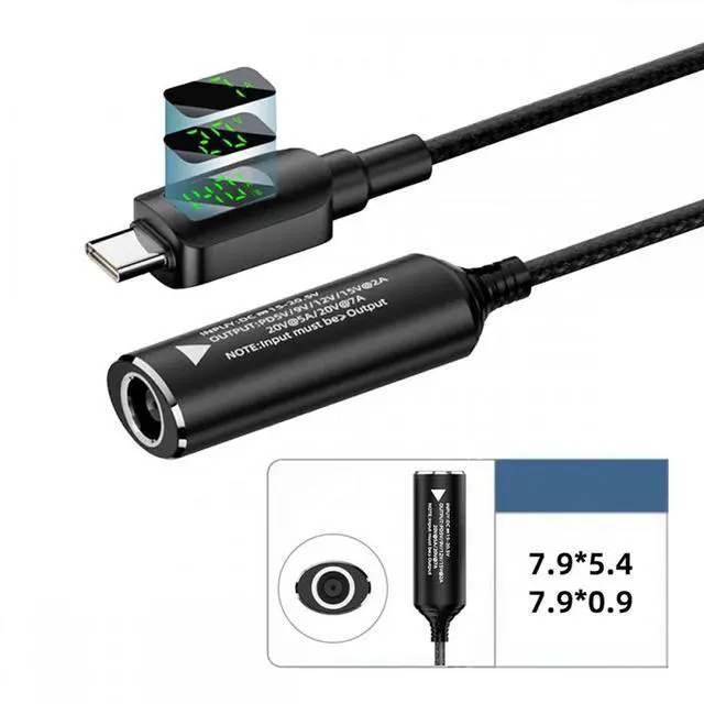DC Jack 7.9x5.4mm Input to USB-C Type-C Power 140W Smart LED Display Charge Cable for Laptop Phone PD9V 5V 20V7A