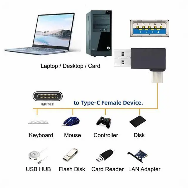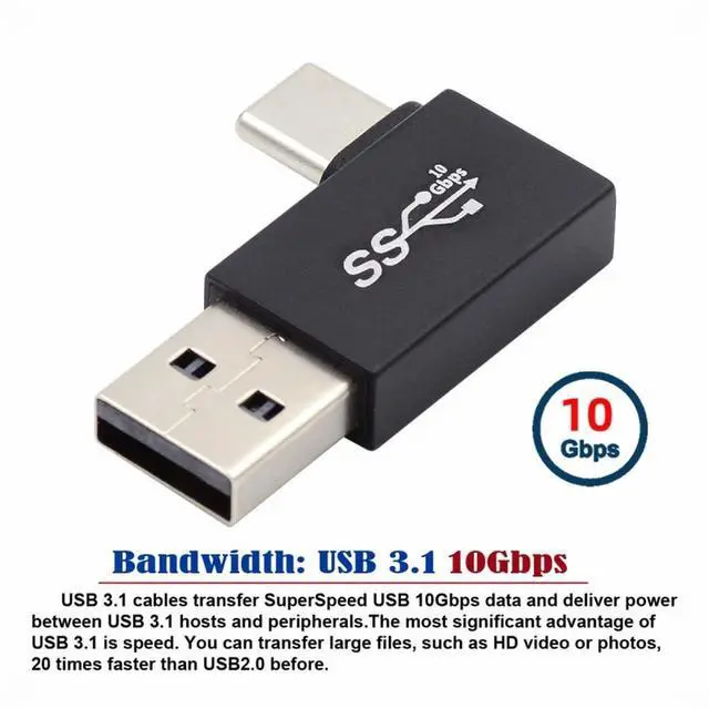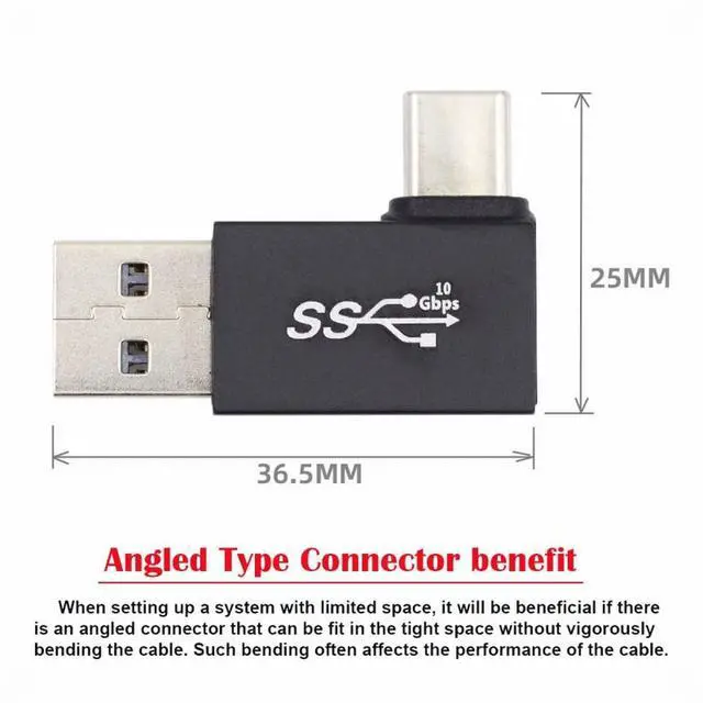 Left Angled USB3.0 Type A Male to USB 3.1 Type-C Male Data 10Gbps Charge Adapter 90 Degree for Laptop Phone