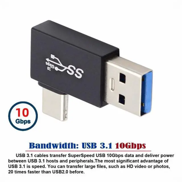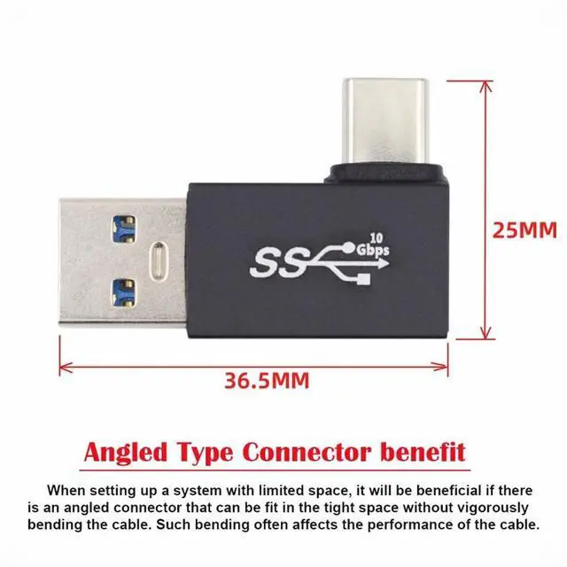 Right Angled USB3.0 Type A Male to USB 3.1 Type-C Male Data 10Gbps Charge Adapter 90 Degree for Laptop Phone