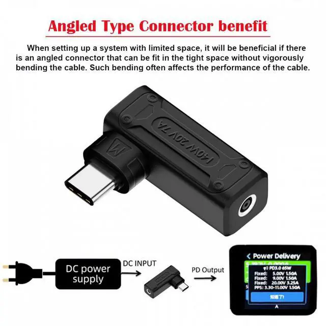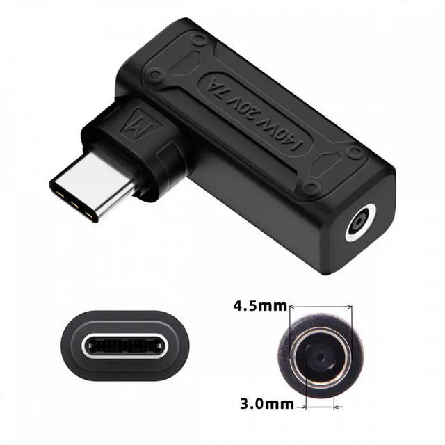 140W 100W DC Power Jack 4.5x3.0mm Input to Type-C USB-C Angled 90 Degree Power Plug Charge Adapter for Laptop Phone