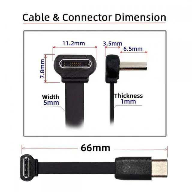 Ultra Slim Flat USB-C Type-C to USB-C Power USB2.0 Data Cable 90 Degree Up Down Angled 65W Fast Charge for Laptop Tablet Phone