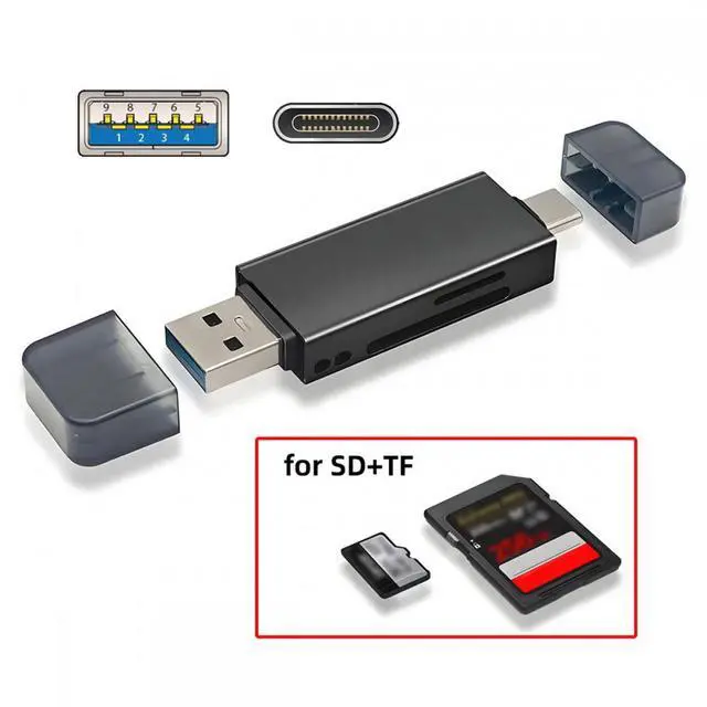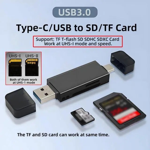 USB 3.0 and Type-C to TF T-Flash Card and SD Card Reader Writer for Camera and Laptop and Tablet and Mate Serial Phone