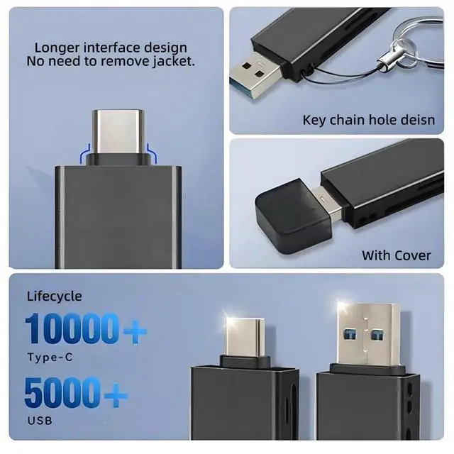 Support USB3.0 speed by computer laptop phone with USB Type-A/Type-C port. Support 5Gbps data transfer rating.