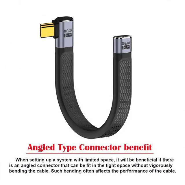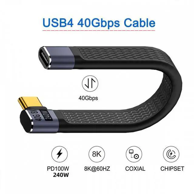 Right Angled USB4 Extension Cable 13cm Slim Flat Male to Female 40Gbps with 240W Power and 8K@60Hz Video