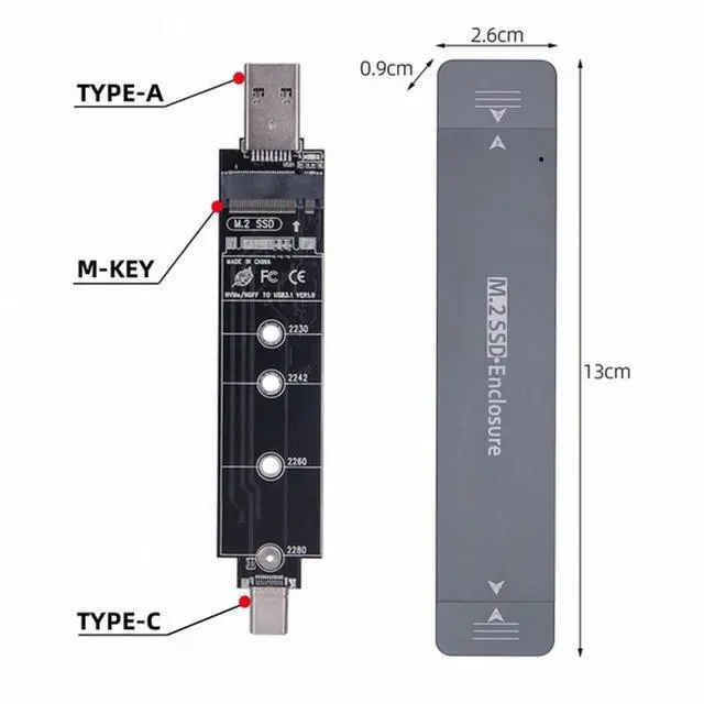 Combo Type-C USB3.0 to NVME M-key M.2 NGFF SATA SSD PCBA Case 2280/2242/2230mm RTL9210B Chipset