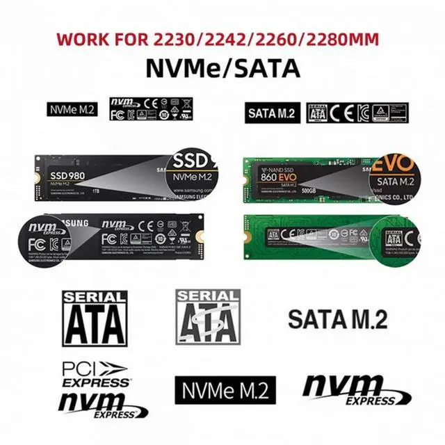 Fit 2230/2242/2260/2280mm NGFF/NVME M.2 SSD.(The NGFF SSD is not included)