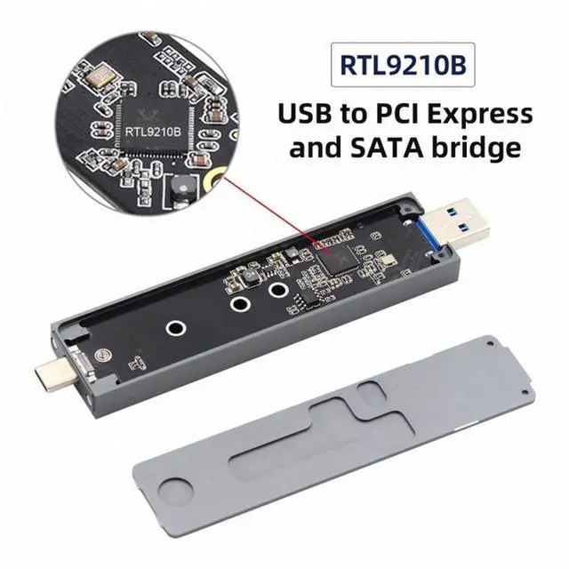 The RTL9210B chipset is a USB bridge that combines a USB device with both a PCIe controller and a SATA controller. Via the PEDET interface of M.2 mechanical, it can auto switch USB-to-PCIe mode, or USB-to-SATA mode.