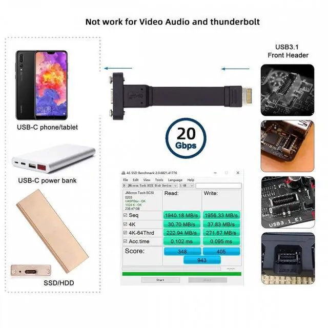 Wide Compatibility: This USB3.2 Type-C Cable is widely compatible with Most of Type-E motherboard, backward compatible with USB3.1, You can also connect with Drivers and Type-C device for Data.