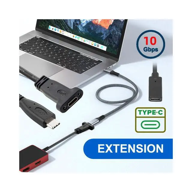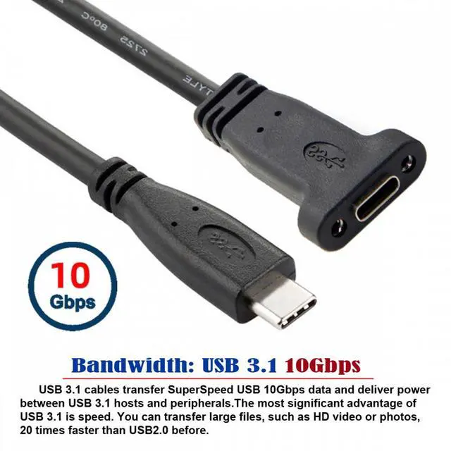 USB-C USB 3.1 Type-C Male to Female Extension Data Cable with Panel Mount Screw Hole