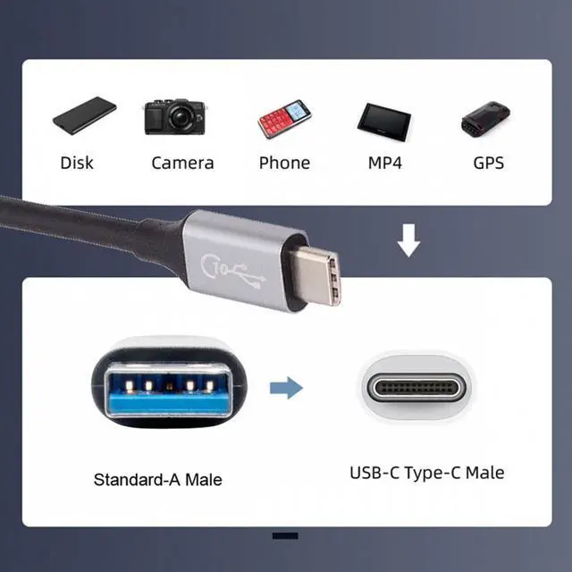 10Gbps USB 3.1 Type-C Male to USB3.0 Type A Male Data Power Cable 5V3A for Laptop Phone Disk