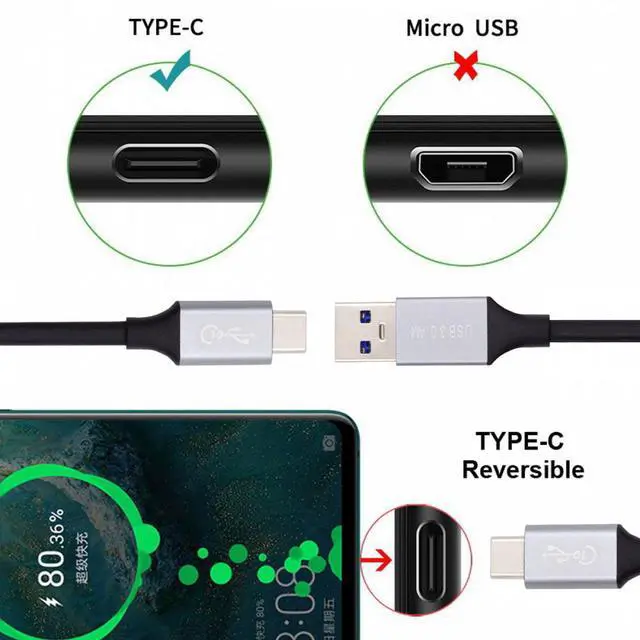 Alloy-Shell overmold and round cable, Reversible Design USB 3.0 3.1 Type-C Male Connector to A male Data cable.