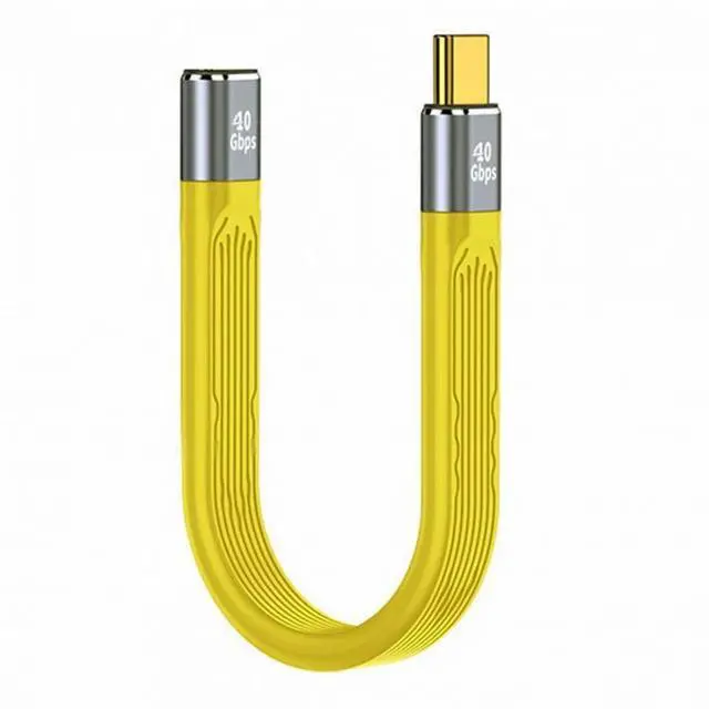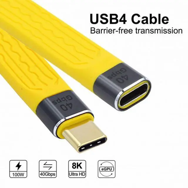 Yellow USB4 Extension Cable Slim Flat Male to Female 40Gbps with 100W Charging and 8K@60Hz Compatible with Thunderbolt3/4