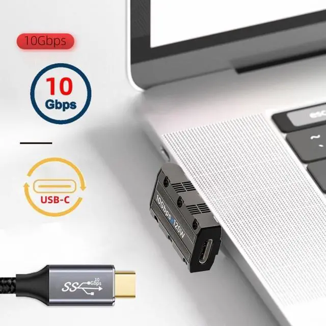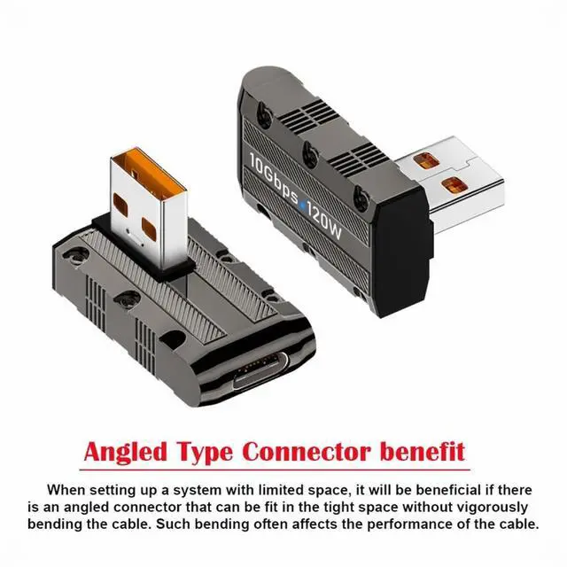 • USB-C USB 3.1 Type-C Female to USB 3.0 Type-A Male 90 Degree Right Angled Type 10Gbps Data 120W Power Adapter Alloy Shell