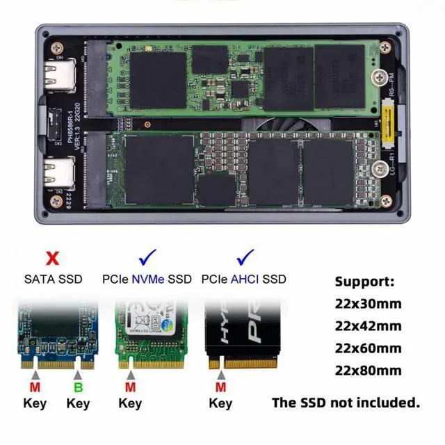 Dual NVME M-key SSD Supported: Applicable to 2230/2242/2260/2280mm PCI-E NVME SSD with capacities up to 2x 2TB.