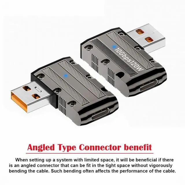 USB-C USB 3.1 Type-C Female to USB 3.0 Type-A Male 90 Degree Angled Flat Type 10Gbps Data 120W Power Adapter Alloy Shell