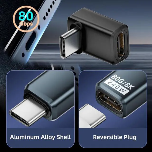This USB5.0 adapter can support Max 240W/140W/100W 28V/20V/5A Charging, It will supply power when your USB-C device is in use. Reversible Design for Type-C connector,Reversible plug orientation Cable direction.