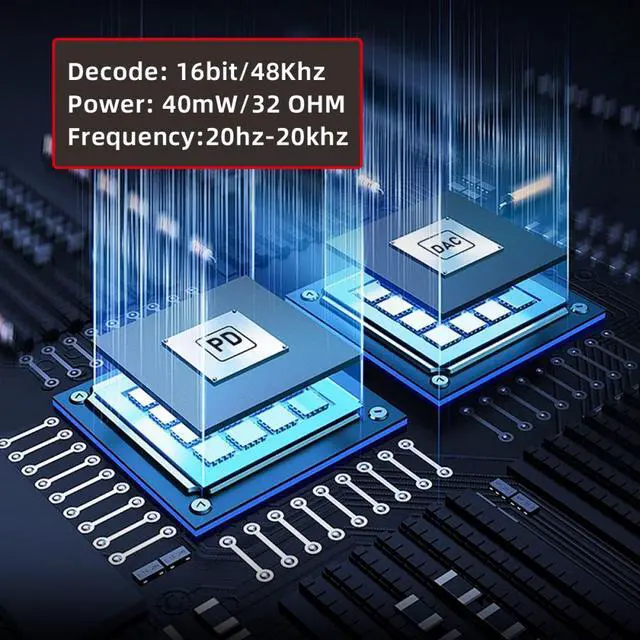 chip, HiFi grade DAC for a HiFi grade listening experience, Hi-res audio format support up to PCM 16bit / 48kHz.