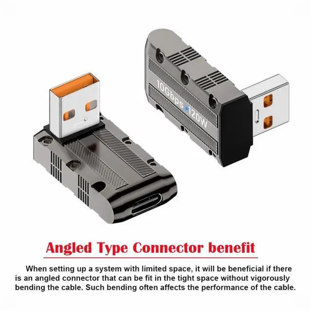 USB-C USB 3.1 Type-C Female to USB 3.0 Type-A Male 90 Degree Angled Type 10Gbps Data 120W Power Adapter Alloy Shell