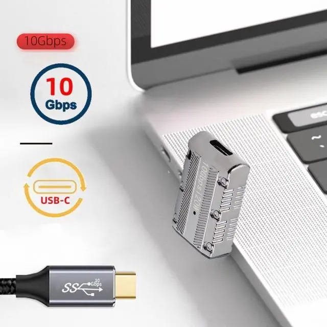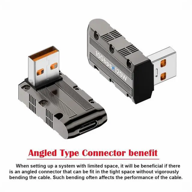 USB-C USB 3.1 Type-C Female to USB 3.0 Type-A Male 90 Degree Angled Type 10Gbps Data 120W Power Adapter Alloy Shell