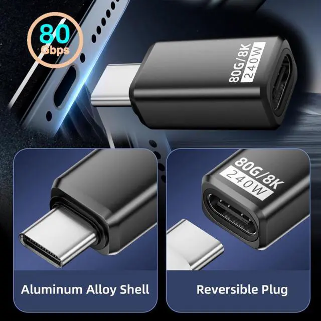 USB5.0 80Gbps Male to Female Extension Adapter with 240W 16K 8K 5K Compatible with USB4.0 Thunderbolt3/4/5