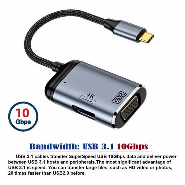 USB-C HDMI VGA Adapter lets you connect your laptop with USB-C port to any HDMI/VGA display or projector.