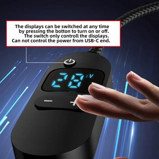 6) The displays can be switched at any time by pressing the botton to turn on or off. The switch only controll the displays. Can not control the power from USB-C end.