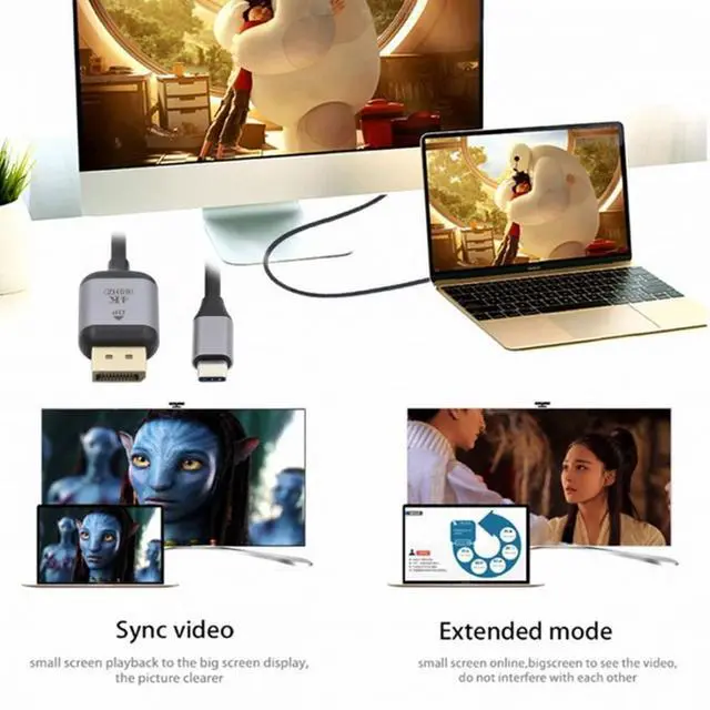 USB 3.1 Type-C USB-C to DisplayPort DP Male 4K Monitor Cable for Mac Laptop 1.8m