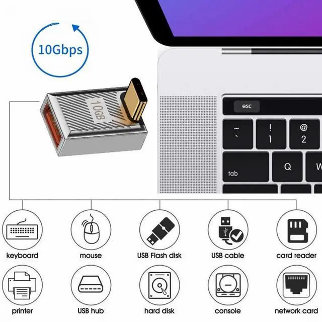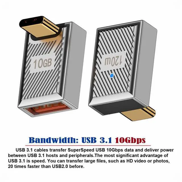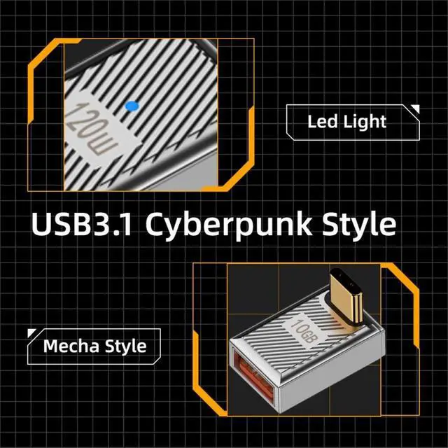 USB-C USB 3.1 Type-C Male to USB 3.0 A Female 10Gbps OTG Data 120W Power Up Down Angled Adapter Alloy Shell Mecha Cyberpunk Style