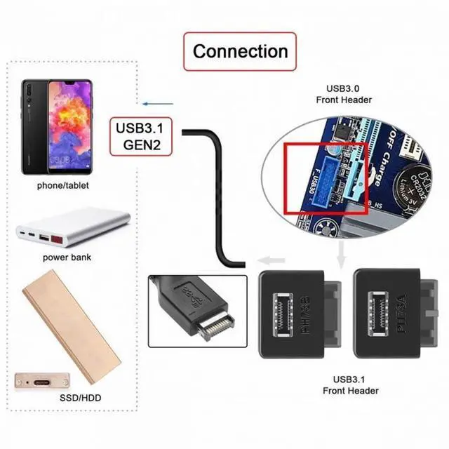 USB 3.1 Front Panel Socket to USB 3.0 20Pin Header Male Extension Adapter for Motherboard