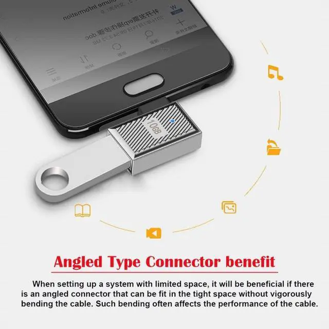 The angled type Allowing you to connect it to a female port, even if space around the port is limited.