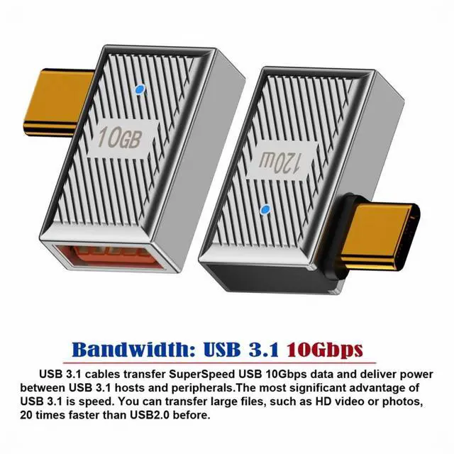 USB-C USB 3.1 Type-C Male to USB 3.0 A Female 10Gbps OTG Data 120W Power Left Right Angled Adapter Alloy Shell Mecha Cyberpunk Style