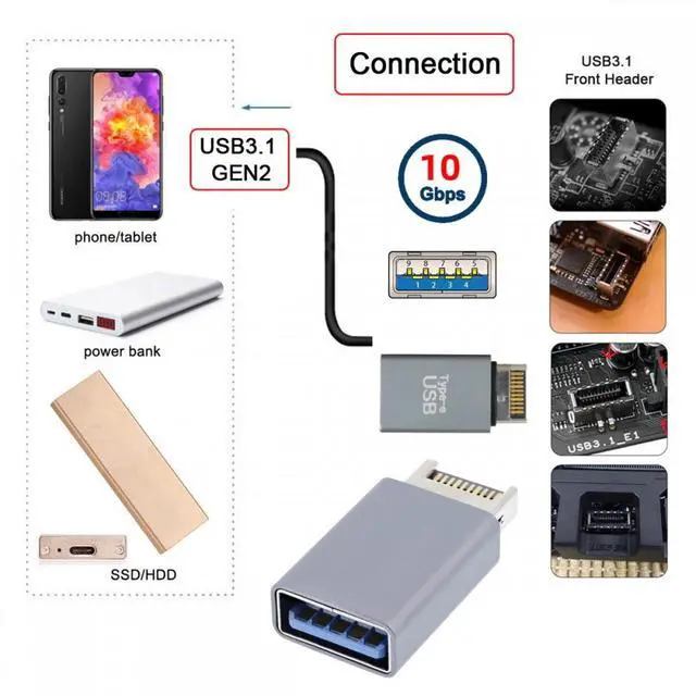 USB 3.1 Front Panel Header Male Type-E to Type-A USB3.0 Female Motherboard Extension Data Adapter