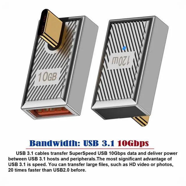 USB-C USB 3.1 Type-C Male to USB 3.0 A Female 10Gbps OTG Data 120W Power Adapter Alloy Shell for Laptop Tablet Phone