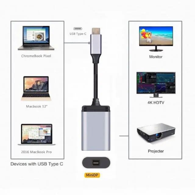 USB-C Type-C to Mini DP Displayport Converter Adapter 4K 2K 60hz for Tablet Phone Laptop