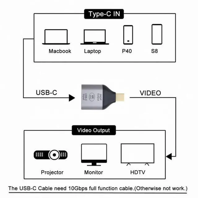 USB-C Type-C Female Source to Mini Displayport DP Sink HDTV Adapter 4K 60hz 1080p for Tablet Phone Laptop