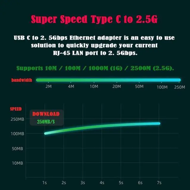 With compliance with USB-C specification, this adaoter ensures true 10/100/1000/2500Mbps network speed without any compromue.