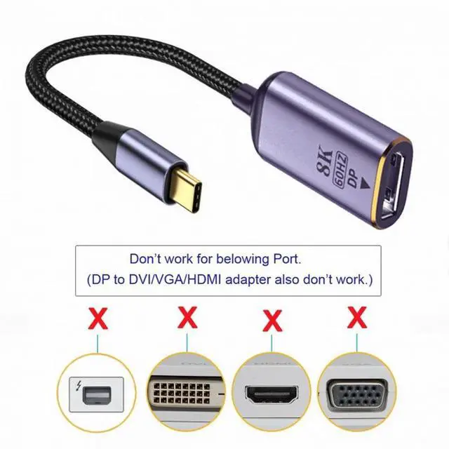 USB4 USB-C Type-C Source to Displayport DP Female Cable Display 8K 60HZ UHD 4K Monitor Displays